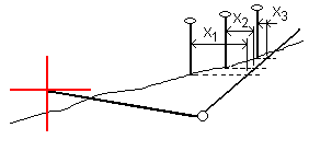 The actual intersection position of the side slope with the existing ground surface – the catch point – is determined iteratively (by repetition). The software calculates the intersection of a horizontal plane passing through the current position, and either the cut or fill side slope, as shown in the following diagram , where x n is the Go Right/Left value.