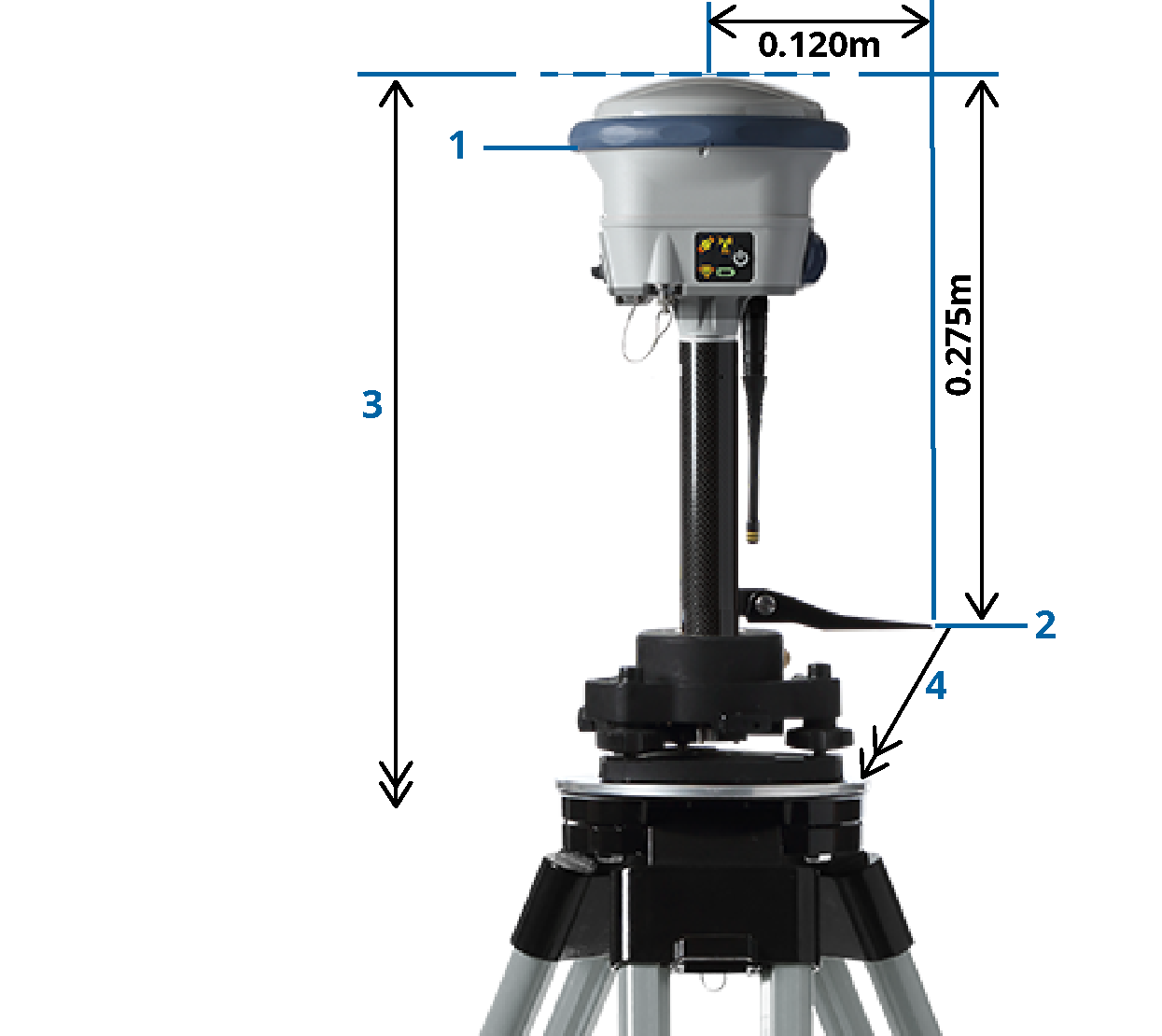If the Zephyr 3 Base antenna is mounted on a tripod, measure the height to the bottom of the notch on the side of the antenna.