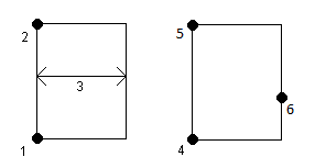 - Zmierz trzy punkty, gdzie pierwszy punkt (4) definiuje jeden róg prostokąta, drugi punkt (5) definiuje następny róg prostokąta, a trzeci punkt (6) służy do zdefiniowania szerokości prostokąta. W pierwszym punkcie używany jest kod kontrolny Początek prostokąta i kod obiektu liniowego, a w drugim punkcie używany jest tylko kod obiektu liniowego.