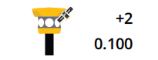 Prismat är låst. Prismakonstanten (i millimeter) och målets höjd visas till höger om symbolen. Vid mätning av en punkt med en offset för dubbelprisma, visas två värden för prismaoffset. |