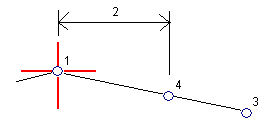 The following figure illustrates the Offset and calculated slope method where the Derived from string (1), the Offset value (2) and the Calculated from string (3) define a new string (4) on the slope between the Derived from and Calculated from strings.