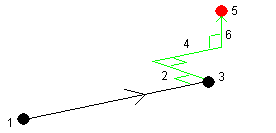La figura seguente mostra un esempio di misurazione del punto 5 con l'opzione Direzioni di offset e picchettamento impostata su Dalla prospettiva dello strumento: