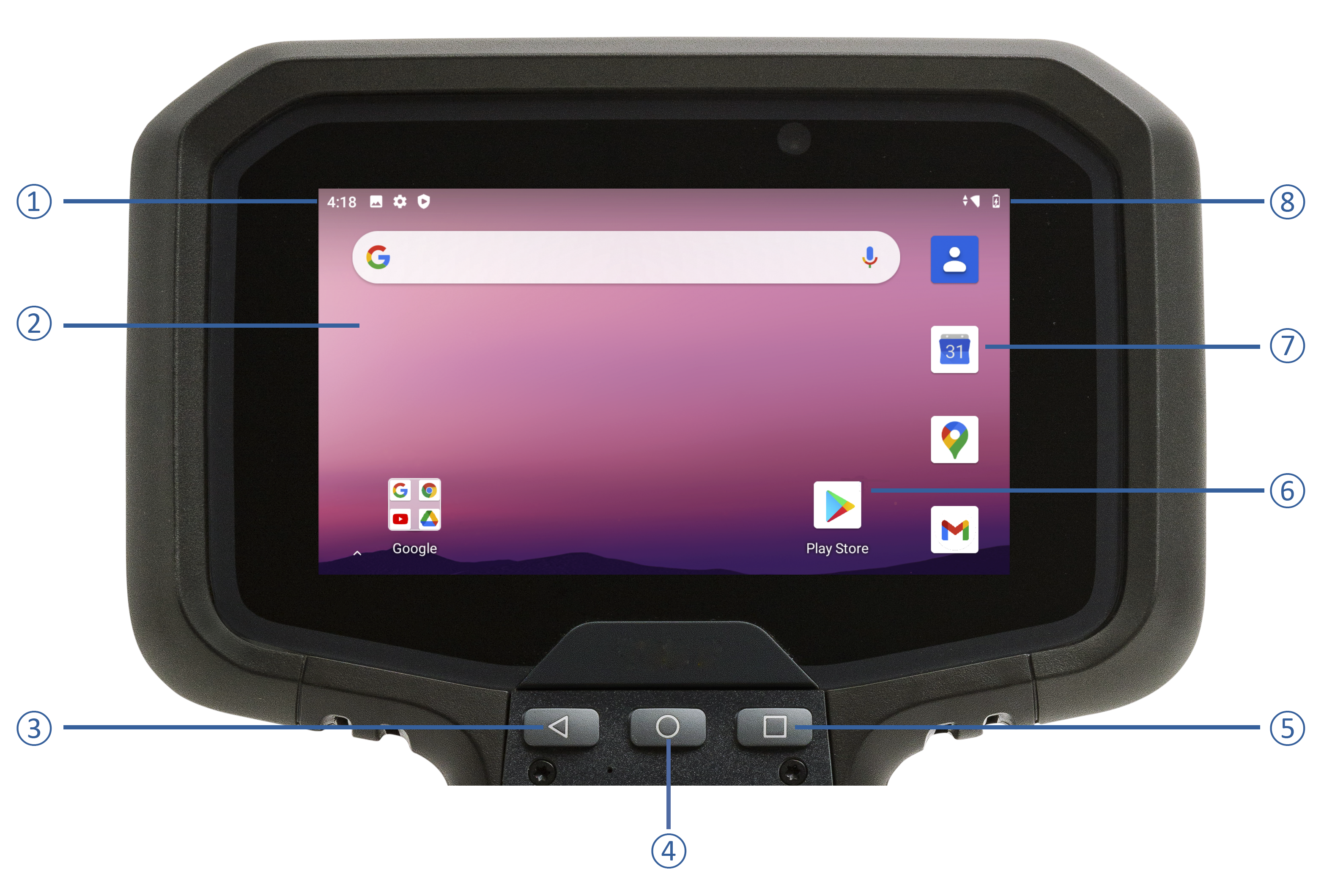 Android Home key. Returns to the Home screen. To get suggestions based on the screen you're currently viewing, tap and hold this button. |
