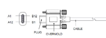 The Type-C connector should be the dual screw USB Type-C locking plug type, as specified by the Universal Serial Bus Type-C Locking Connector Specification Revision 1.0 March 9, 2016. The below figures are extracted from the above specification, highlighting the required critical dimensions for the locking plug: