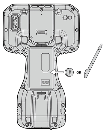 3. Pry open the SIM card door using a coin or the tool located on the stylus tether as shown; do not remove the door completely.